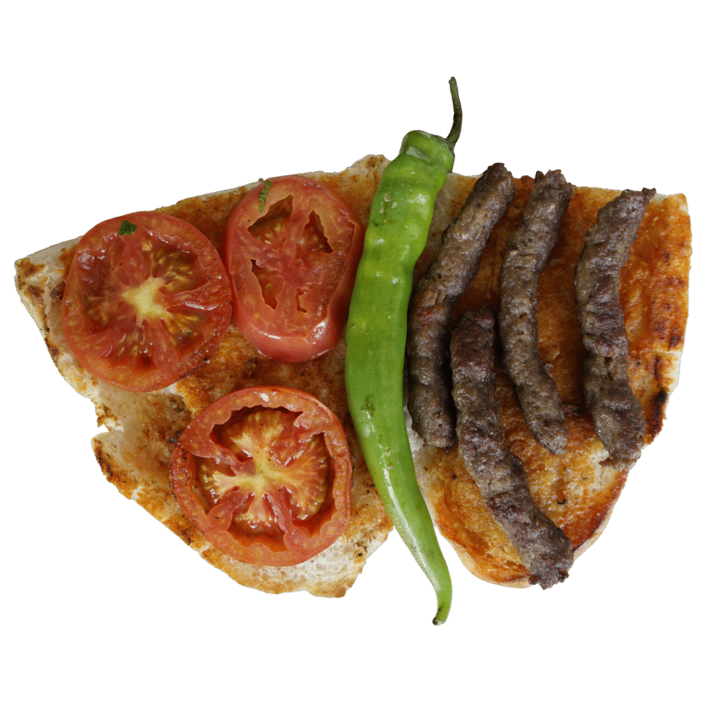 Dürüm Arası 100 Gr. Ödemiş Köfte. Domates, soğan ve yeşillik eşliğinde.