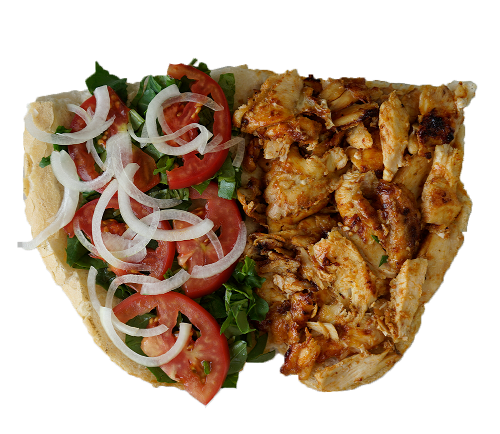 Tavuk Döner 80 Gr. Domates, soğan ve yeşillik eşliğinde.